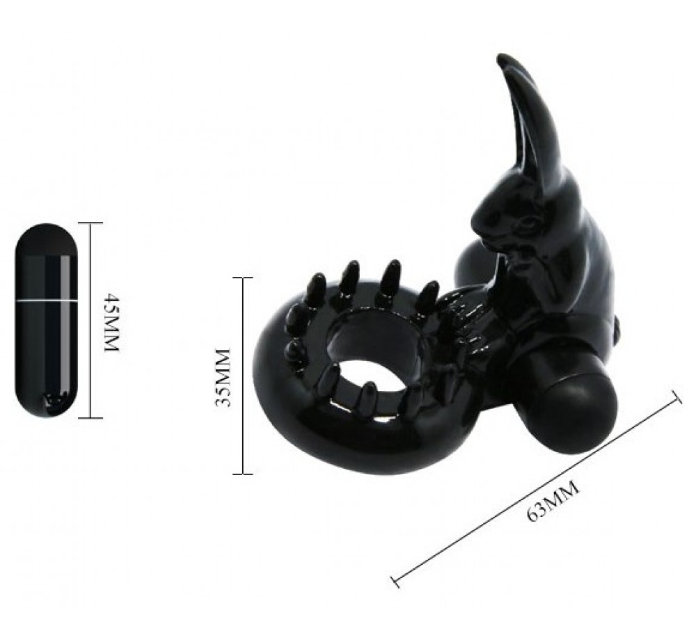 Виброкольцо Зайчик с вибрацией, черное, D 3.8 см, TPR